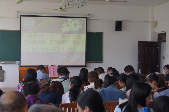 4月12日中午13:00,在空港校区1308教室,召开经济与管理系三届一次教代会、工代会委员候选人提名酝酿会。经管系全体教职工参加会议,会议由梁勤书记主持。