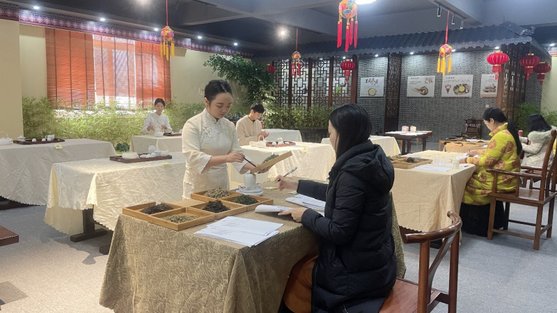 本次茶艺师(五级)职业技能等级认定共有16名学生参加。为保证本次职业技能等级认定工作的顺利进行,经济与管理系积极组织、认真落实,严格按照茶艺师《国家职业技能标准》文件要求开展认定工作,提前做好理论考场准备、实操考场工位布置、候考室设置等一系列准备工作,确保认定工作有序开展。在质量认定与监督方面,坚持规范、严谨、有序的工作原则,全程现场督导,严格评审,保证鉴定质量。理论考试现场秩序井然,考风端正,实操技能考场考生动作熟练。整个考核过程充分展示了考生对茶艺理论知识、茶艺冲泡技术、茶艺师职业素养等知识的掌握情况。