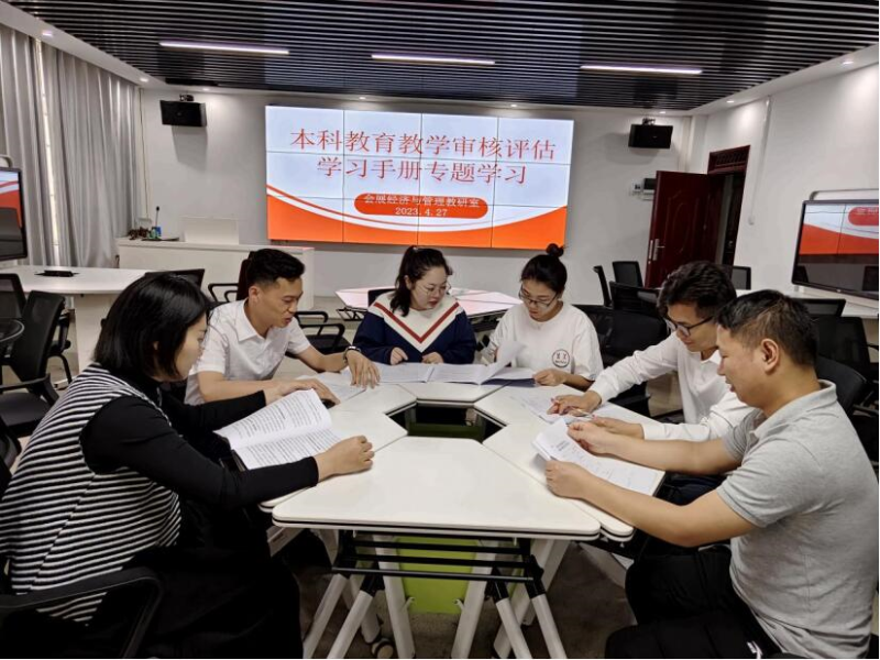 4月27日上午,会展经济与管理教研室在会展专业实训室2103开展《本科教育教学审核评估学习手册(教师版)》专题学习会议,教研室全体成员参加本次专题学习会议。