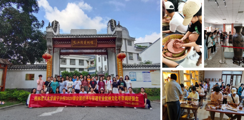 2021年6月15日,经管系会展经济与管理专业20级学生在指导老师的带领下,前往钦州市开展了为期一周的地方优秀传统文化调研。本次调研的主要内容包括国家级非物质文化遗产项目:钦州坭兴陶烧制技艺、自治区级非物质文化遗产代表性项目:钦州采茶戏、粤剧、烟墩大鼓、灵山竹编技艺等地方优秀传统文化。对传统文化研习的主要目标是让学生走出课堂,深入民间,通过实地考察研习、感受中国传统文化魅力、树立文化自信,同时结合专业实训课程《传统文化展示实训》的要求对传统文化进行传统展示和创新设计,实现对中国优秀传统文化的保护、传承、展示和发扬创新,提高学生专业水平和实践能力,培养学生科研调查能力和创新精神,从而达到地方性、应用型人才培养目标的要求。