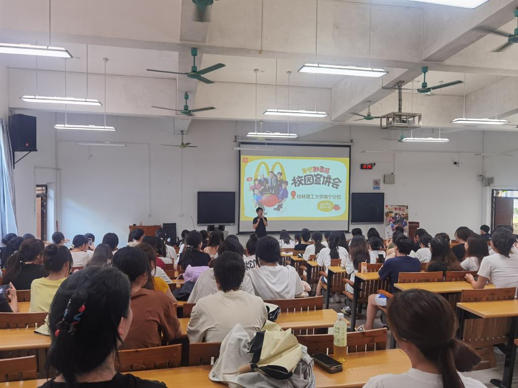 6月5日下午,深圳市鑫道餐饮管理有限公司、广西麦当劳餐厅食品有限公司到空港校区8108教室开展校园宣讲、招聘活动。实习指导老师、2023级市场营销专业学生到场参与。