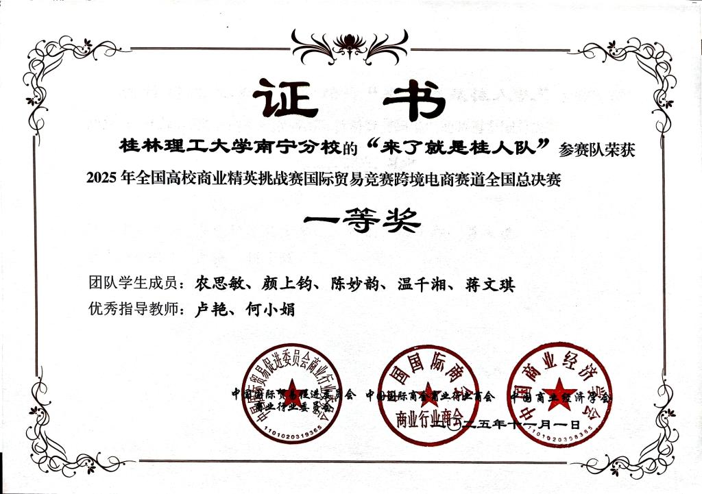 近日,2025年全国高校商业精英挑战赛国际贸易竞赛跨境电商赛道全国总决赛圆满落幕。学院学子在比赛中喜获一等奖3项。
