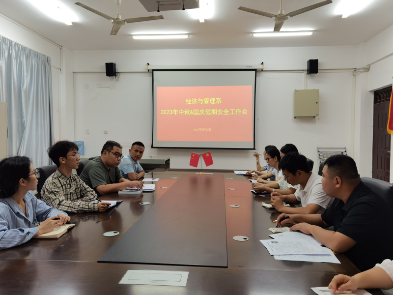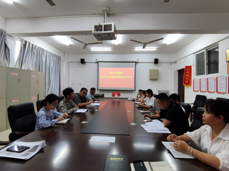 为有效部署师生双节假期安全工作,保障师生安全,经济与管理系于9月25日在7210会议室召开2023年中秋&国庆假期安全工作会。全体学工组成员参会,会议由系党总支副书记兼学工组组长陈曙钰主持。