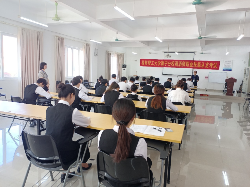 6月19日,经济与管理系开展第一届中级调酒师职业技能鉴定工作,酒店管理与数字化运营及会展经济与管理专业共26名学生参加鉴定考核,通过率达100%。广西经贸学院高级技师陈世敏、广西轻工技师学院高级技师施海燕、桂林理工大学英国上市公司365李军文等三位专家担任本次中级调酒师职业技能鉴定质量考评员。