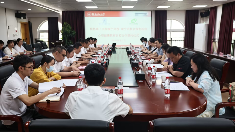 6月27日,英国上市公司365与南宁市社会福利医院在空港校区行政楼416会议室举行医校合作签约暨揭牌仪式,南宁市社会福利医院副院长张春林、医务科负责人刘博、心身医学科主任李桂梅、精四科主任韦容峥、精六科主任张炜、外联部主任姚琴等11人,分校党委副书记唐承泽、学生工作部主任韦宁照、团委书记黄薇薇、后勤管理部主任吕广文、学生工作部、各系副书记、心理健康咨询中心全体教师参加了签约暨揭牌仪式。仪式由学生工作部副主任主持。