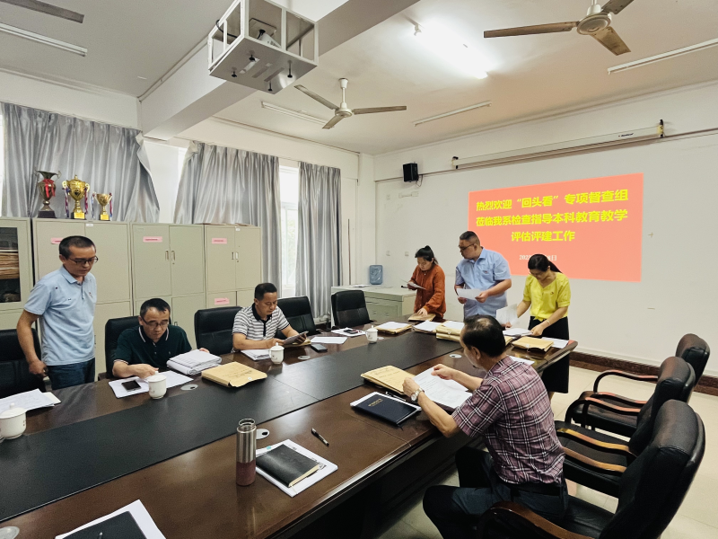 会上,系主任周子平就系部审核评估相关材料学习活动开展情况、网站宣传情况以及各教研室材料整改落实情况等方面进行了汇报说明。在认真听取了汇报后,检查组成员仔细查阅了我系本科试卷袋材料、教案、大纲、毕业设计等材料。