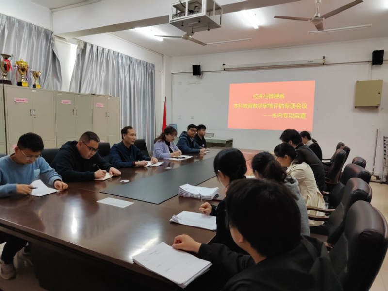 为进一步推进本科教育教学审核评估工作,3月30日下午,经济与管理系在空港校区7209室组织开展本科教育教学审核评估材料专项自查工作。系部组织领导班子、教研室主任、骨干教师、教学秘书成立专项检查组开展自查工作。