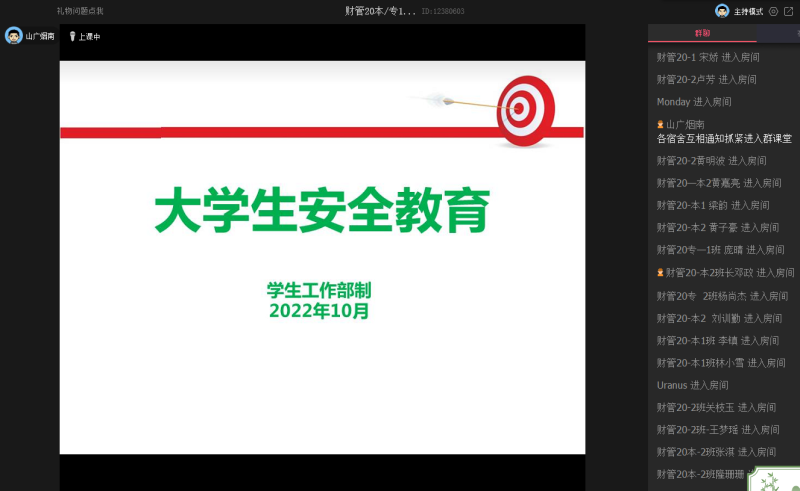 会议从预防电信网络诈骗、意识形态安全、用电安全、心理健康、四个方面开展。辅导员针对近期各大高校发生的网络诈骗案件,结合具体事例,让同学们掌握电信诈骗的常见手段和防范方法,安装注册国家反诈中心APP,开启来电预警模式,确保自身财产安全;对意识形态安全、用电安全进行强调,时刻保持清醒的头脑,筑牢校园安全底线;普及心理健康知识,树立正确的心理健康观念、拥有阳光开朗的生活。