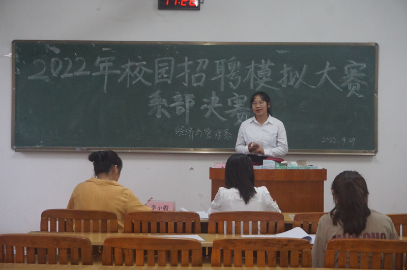 为帮助我系学生熟悉求职流程,掌握面试技能,助力学生职业规划。9月29日下午,经济与管理系在空港校区六栋物华楼6303、6304、6305教室举行2022年校园招聘模拟大赛系部决赛。