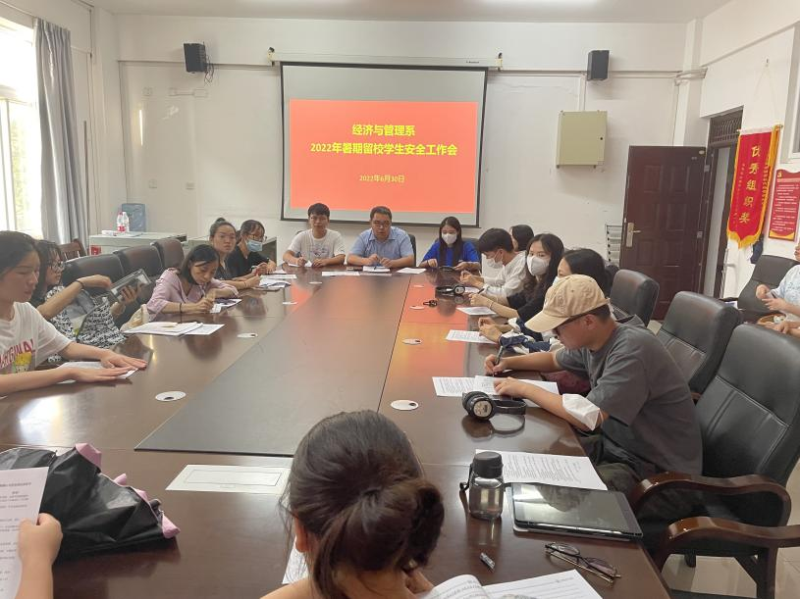 为加强暑假留校学生安全意识,确保留校学生度过一个平安、充实的假期,6月30日下午,经济与管理系在7210教室召开2022暑期留校学生安全会议,党总支副书记兼学工组长陈曙钰出席会议,辅导员罗妹梅、张坤老师及全体留校学生参会。