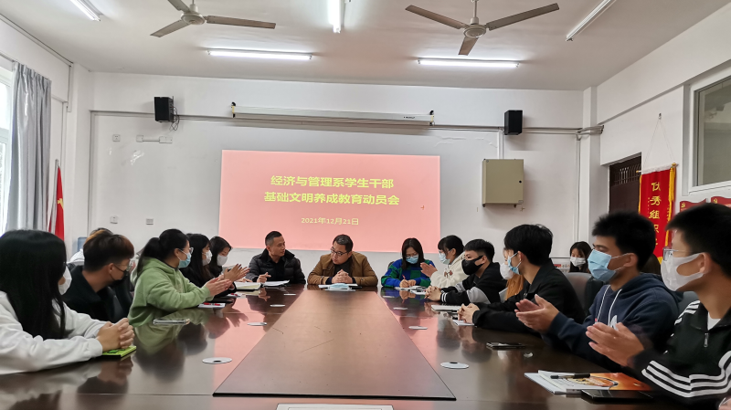 12月21日中午,经济与管理系在7210会议室召开学生干部基础文明养成教育动员大会。系党总支副书记兼学工组组长陈曙钰、团总支书记陆吉瑞及各学生团体负责老师出席会议,各团体代表及委员参与会议。