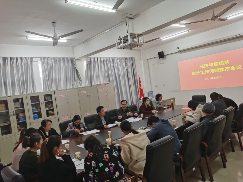 12月2日下午,经济与管理系在7210会议室召开审计工作问题整改会议。本次会议由系主任周子平主持,系部领导班子、各教研室主任、教秘、实验员参会。