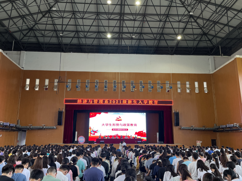 9月15日上午,经济与管理系在体育馆召开2021级新生形势与政策专题报告会,系部领导班子、2021级新生辅导员及全体新生参加了报告会。