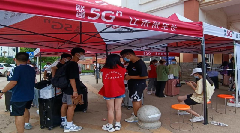 返校学生经手部消毒、行李消毒、出示健康码、体温检测等环节,有序进入校园。校门接待处,各老师和学生干部们热情迎接返校学生,提供全面周到的服务。