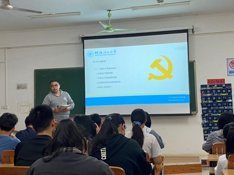 我系党总支副书记兼学工组组长陈曙钰老师在课上紧扣学生问题和社会热点,从理想信念到入党动机,首以理想信念指导大学生坚定人生目标,尾以入党动机紧扣建党100周年主题,引导大学生有正确的入党动机,应是“志愿加入中国共产党,全心全意为党和人民服务!”积极向党组织靠拢。