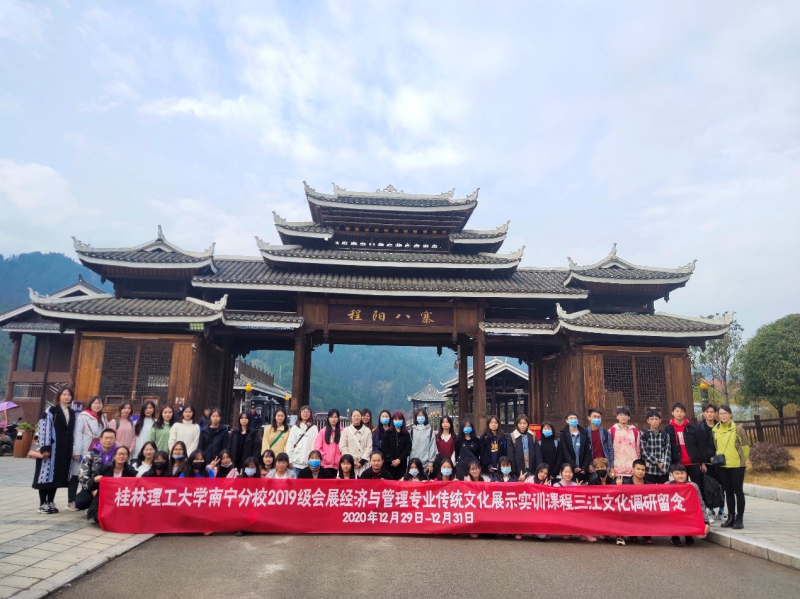为进一步巩固专业理论知识,拓展学生视野,提高我系学子的实践能力,2020年12月28日—2020年12月30日,我系19级会展经济与管理专业及17级旅游管理专业于柳州三江侗族自治县开展了为期三天的校外实训课程。此次出行的带队老师有罗洁、陈聪以及索玮聪老师。