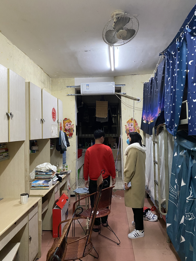 党总支副书记兼学工组组长陈曙钰检查宿舍现场