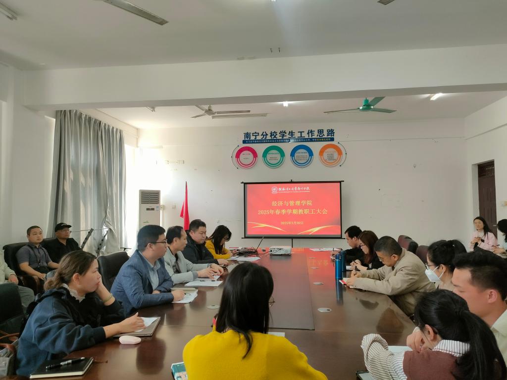 3月20日下午,经济与管理学院在空港校区7205会议室召开2025年重点业务工作目标动员部署会。学院领导班子及全体教职工参加会议,会议由学院院长周子平主持。