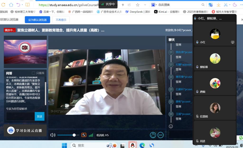 本次学习活动全体教师以教研室为单位,通过集中观看、个人自学等方式深入学习“聚焦立德树人,更新教育理念,提升育人质量”课程直播。课程中,李志义教授立足高等教育改革前沿,剖析当前育人工作中的核心问题与突破路径。课程围绕“三全育人”体系构建、课程思政深化路径、学生发展核心素养培育、教育教学评价改革等维度,提出更新育人理念、创新育人模式、优化育人机制的具体策略,推动形成高质量育人新格局的思路办法。