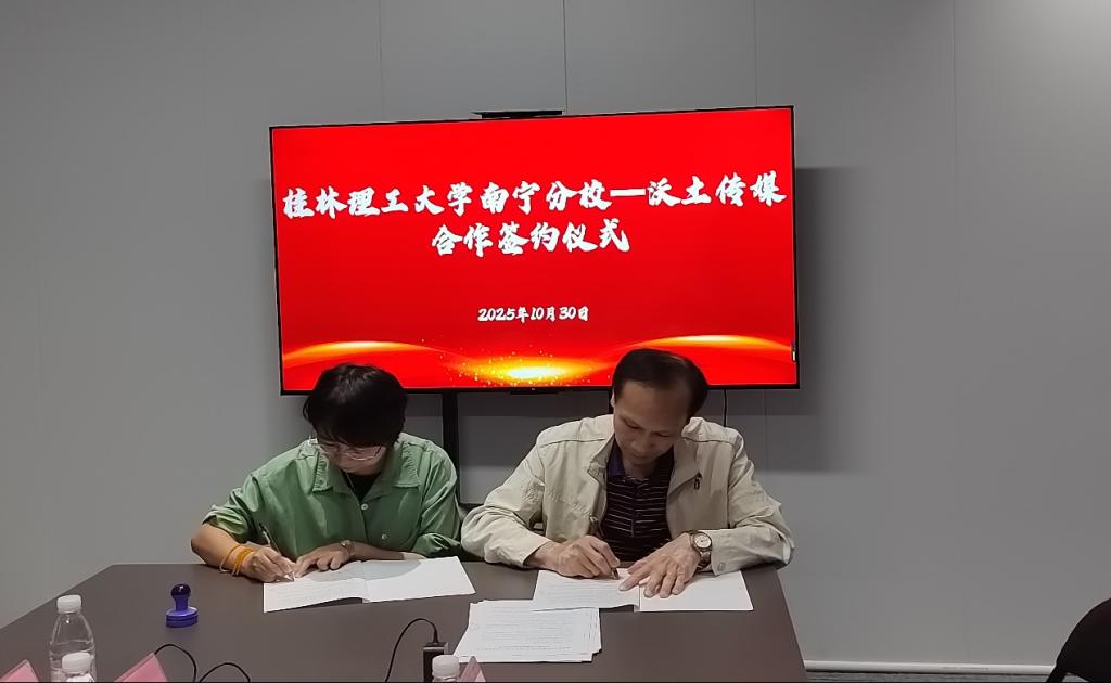 双方举行了签约及“广西南宁市沃土传媒有限公司实践基地”揭牌仪式,标志着合作进入实质推进阶段。此次合作将整合企业资源与学校人才优势,拓展学生实习与就业渠道,同时强化企业人才储备与创新能力。