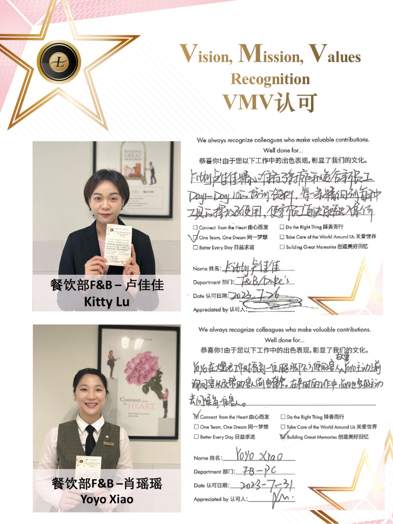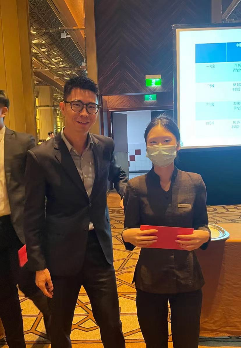 2021级酒店管理与数字化运营专业的学生于2023年9月4日开始进行跟岗实习,学生分布于不同城市不同品牌酒店的各大岗位,其中酒管21-2班的肖瑶瑶同学(在深圳朗廷酒店实习)在学习过程中凭借扎实的专业知识和过硬的专业技能,在实习岗位表现优异,获实习单位的高度认可;酒管21-2班的张怡、张峻豪同学(在上海金茂君悦酒店实习)参加酒店举办的餐饮技能大赛获二等奖和三等奖荣誉。