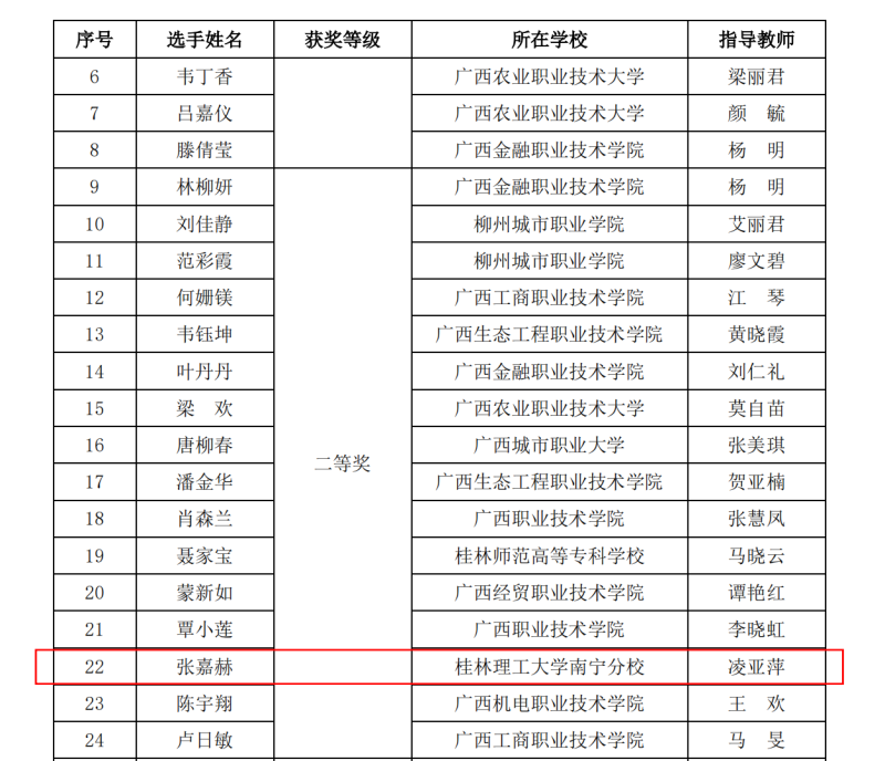 近日,2024年广西职业院校技能大赛高职组《导游服务》赛项成绩揭晓。经济与管理学院2022级旅游管理专业张嘉赫同学在指导老师的耐心指导下,凭借稳定的发挥和过硬实力荣获二等奖。本项比赛主要进行理论考核、才艺表演、导游词创作、自选景点现场讲解、英语对话等多项考核。