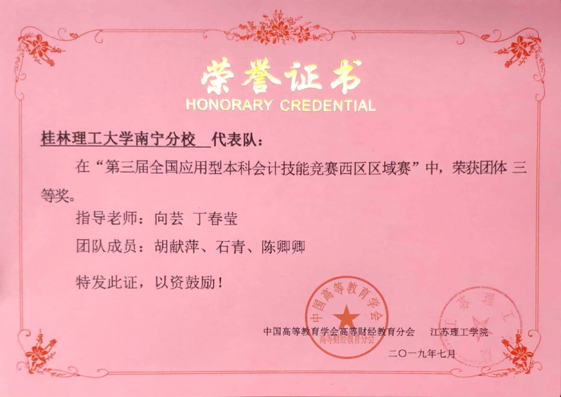 第三届全国应用型本科会计技能竞赛西区区域赛三等奖