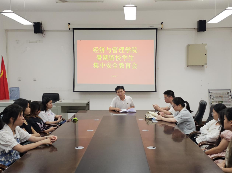 为更好筑牢学院暑期安全稳定防线,落实安全稳定工作细则,经济与管理学院于7月13日下午在7210会议室召开暑期留校学生集中安全教育会。