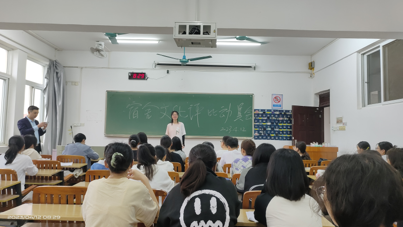 2023年4月12日8时许,会展经济与管理22-本1班在一栋教学楼1504教室开展了宿舍文化评比动员会。班主任邹志友及班级全体同学参加该会。