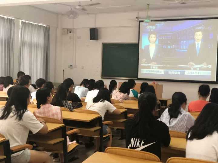 分享会后,会计18-1班全体同学还共同观看了《新闻联播》和《焦点访谈》节目。