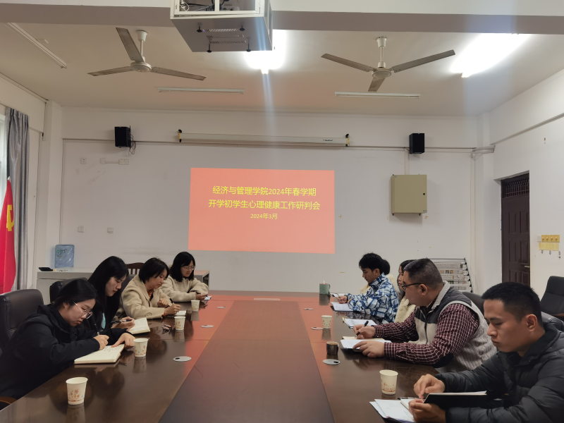 3月15日,经济与管理学院在空港校区景明楼7210会议室召开3月心理研判会。学院党总支副书记兼学工组长陈曙钰、团总支书记陆吉瑞、心理健康教育中心教师黄霞妮、黎冬艳、阮青霞及学院全体辅导员参加会议。