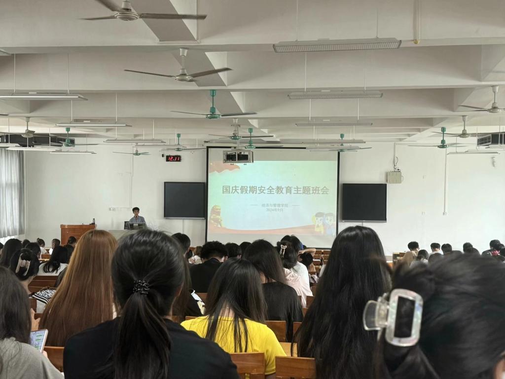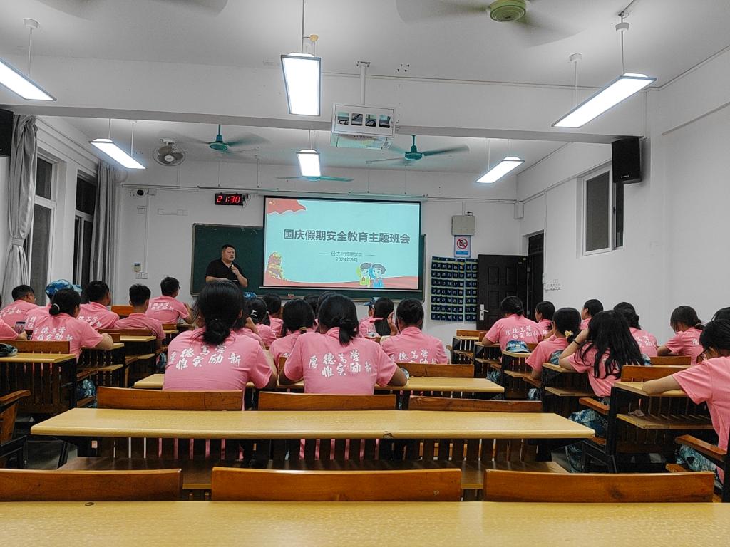 为确保学生度过一个平安稳定的国庆假期,提高学生安全防范意识和自我保护能力,经济与管理学院于9月23日至26日组织开展国庆节前安全主题教育班会。