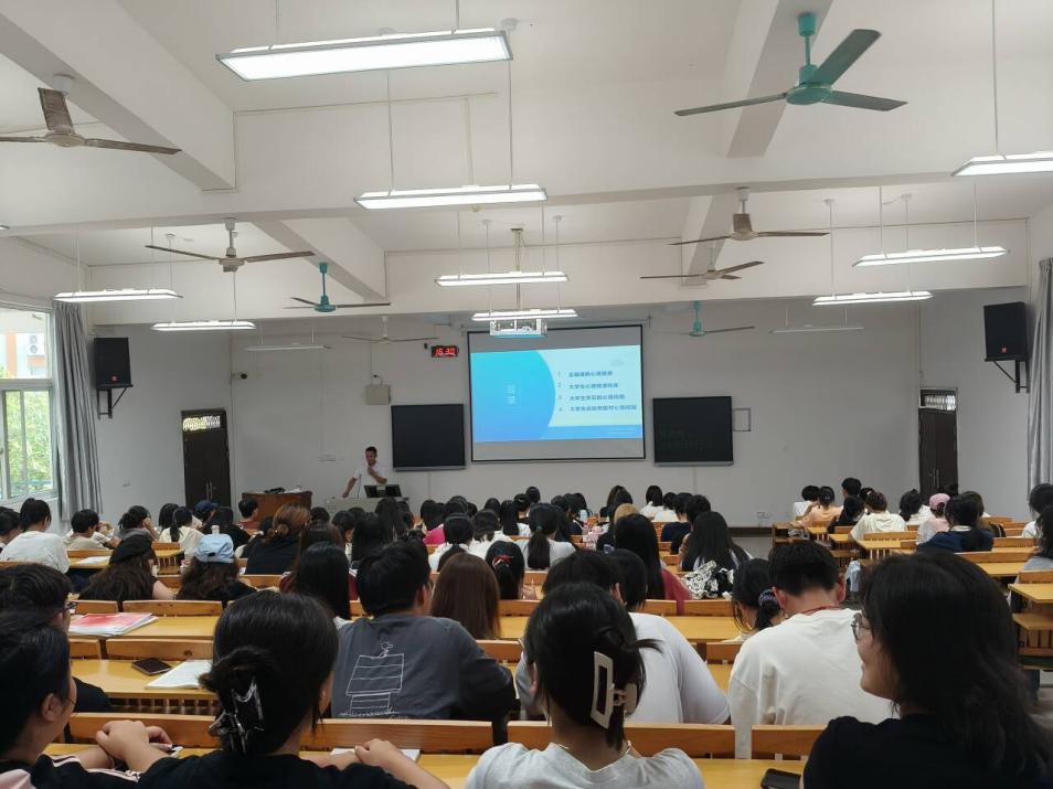 课上辅导员从正确理解心理健康、大学生心理健康标准、大学生常见的心理问题、大学生应如何面对心理问题等方面讲述,强调要坦然对待心理问题,保持积极乐观的心态来应对生活中的挑战,同时对我校心理咨询中心老师、设备及预约情况进行介绍。