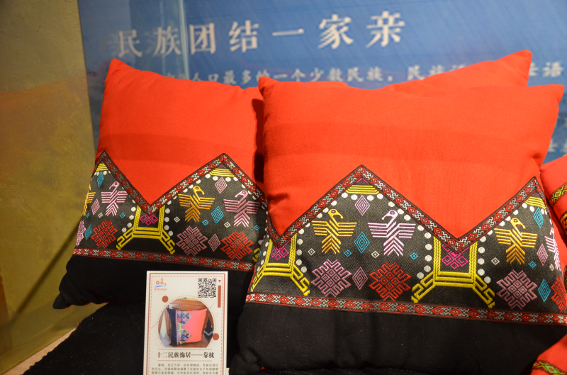 在漫长的历史发展中,壮锦承载和凝聚了壮族妇女千年的聪明智慧与审美情趣,它色彩对比强烈,纹样多为菱形几何图案,结构严谨而富于变化,具有浓郁粗犷的艺术风格。主要用于制作衣裙、被面、背包、台布等。