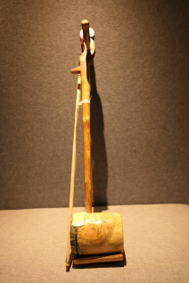 竹筒壶,壮族、布依族称“言派/yienz faiz”,多采用一截一端带有竹节的楠竹筒制成,筒长15厘米,筒前口蒙以桐木薄板或老笋壳,也有蒙蛇皮的,面径约8厘米,竹筒后端为竹节,节隔上镂空雕花型音窗。琴杆竹制或木制,全长约70厘米,拉两条丝弦或钢丝弦。琴弓用细竹拴以马尾而成,弓长约60厘米。一般为伴奏乐器多用一个把位,音色浑厚。