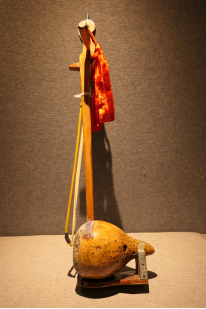葫芦胡,壮族、布依族称“言母/yienz mbaeuj”,用直径12至18厘米的干葫芦制成,有圆形的,也有弯形的,琴面蒙蛇皮或青蛙皮,后面打数个音孔,琴杆为木质,长约60厘米,有金属弦和丝弦两种,葫芦胡属于低音胡,音域较宽。