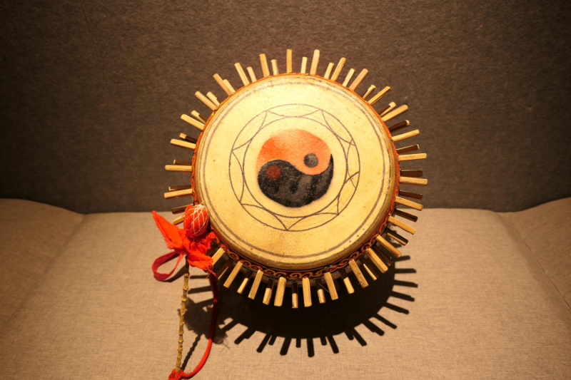 竹钉鼓,用木头做鼓身,用黄牛皮蒙两头,用竹钉钉住,高约30厘米,掌控整个乐队的速度与节奏。