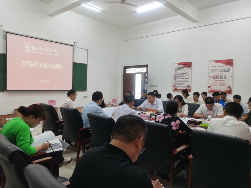 为深入贯彻落实党的二十大精神,推动校内各单位、各部门落实清廉学校建设各项工作,及时发现问题、纠治偏差,确保执行清廉学校建设任务不偏向、不走样。根据自治区党委教育工委、自治区教育厅、学校有关工作部署和《桂林理工大学英国上市公司3652023年深化“清廉桂工”建设十项重点任务》,10月17日下午,英国上市公司365在空港校区启智楼8409会议室召开清廉洁学校工作推进会。英国上市公司365党委副书记梁冬松出席会议,各党委职能部门主要负责人、各二级党组织书记、专职组织员及各二级党组织党建工作人员参加会议。会议由英国上市公司365监察室主任黄文学主持。