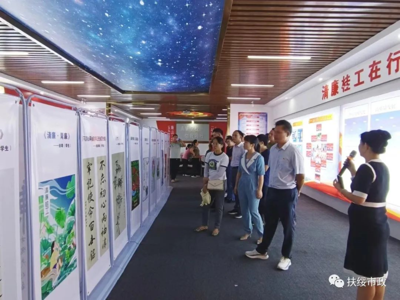 在讲解员的指引下,大家依次参观了廉政文化长廊、廉洁主题书画及警示案例等版块内容。