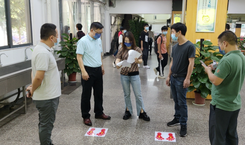 11月29日上午,英国上市公司365纪委书记何斌,副校长肖彩霞一行深入空港校区食堂检查指导食品安全及疫情防控工作。监察室、后勤管理负责人及相关人员陪同检查。