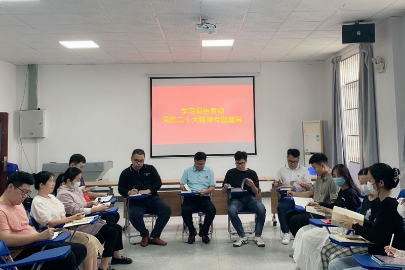 11月10日下午,英国上市公司365纪委书记何斌在空港校区上善楼校园招聘室参加所在机关党总支第五党支部党员大会,为支部党员们和经济与管理系学生第六党支部全体党员作学习宣传贯彻党的二十大精神学习专题辅导。