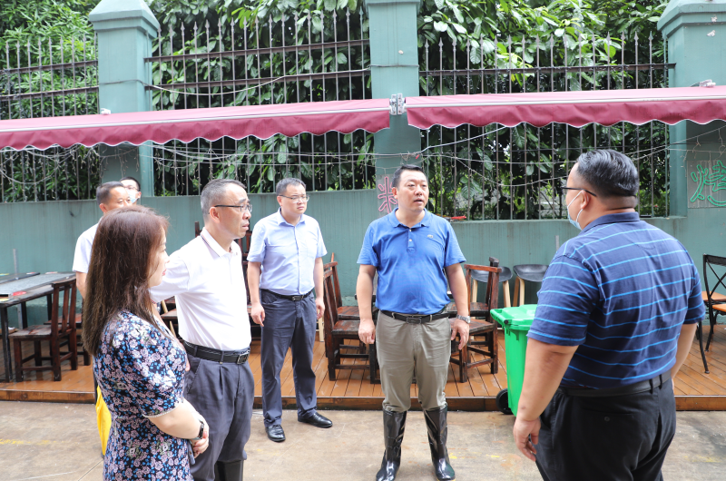 在商业街检查疫情防控和食品卫生安全管理落实情况