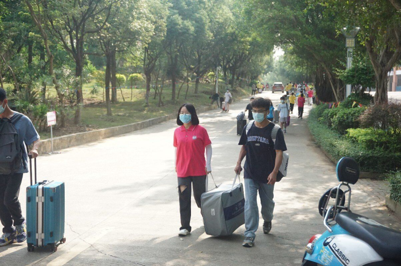 为确保迎新当天各项工作的顺利开展,我系对迎新工作的各个环节进行了细致周到的安排,采取“点对点、一站式、立体化”的贴心服务。志愿者的工作贯穿于新生报到的全部流程中。在校门口报到处,他们为新生们登记信息、核验录取通知书、行李消杀,健康码查询和四码核验;报到点至学生宿舍的路上,他们帮助新生一趟一趟地运送行李;在宿舍楼下,“经管红”们一个一个地将行李搬到宿舍。虽然是简单流程的不断重复,但他们丝毫没有松懈,耐心指导新生进行报到事宜。迎新志愿者们用行动将心中的经管温情传递给每一位新生,用每一个实际行动来传播经管人的温暖。