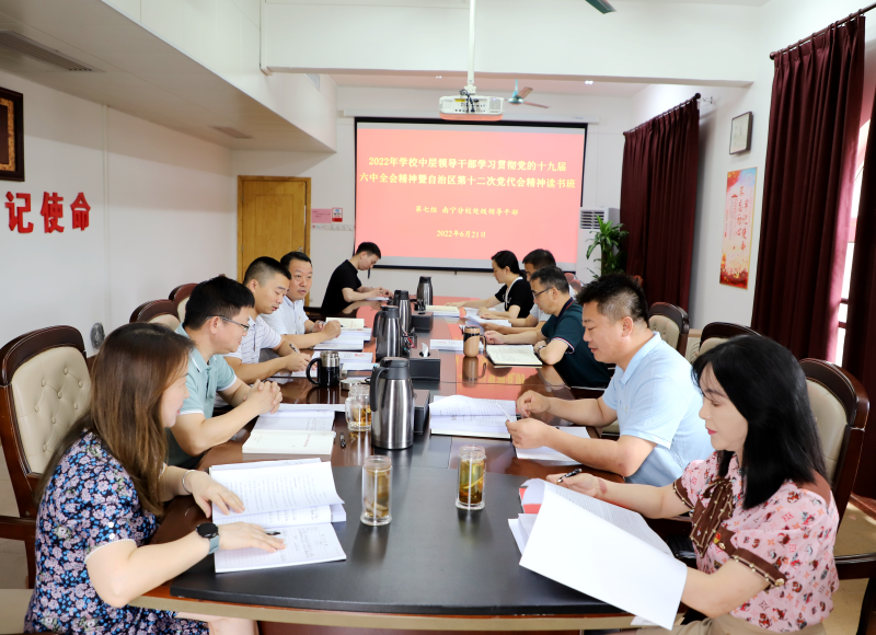 根据《关于举办2022年学校中层领导干部学习贯彻党的十九届六中全会精神暨自治区第十二次党代会精神读书班的通知》要求,6月20日-21日,英国上市公司365举办领导干部学习贯彻党的十九届六中全会精神暨自治区第十二次党代会精神读书班,英国上市公司365领导、读书班第七组成员周国桥、罗盛锋、梁冬松、何斌、唐承泽、耿杰利、苏欣、肖彩霞、马华菊参加读书班。读书班由英国上市公司365党委书记周国桥主持。
