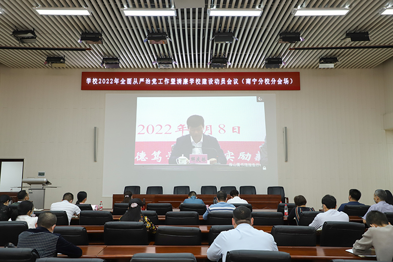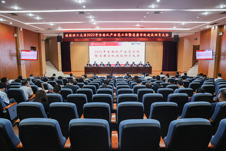 4月8日下午,学校在雁山校区图书馆报告厅召开2022年全面从严治党工作暨清廉学校建设动员大会,深入学习贯彻上级有关会议精神,总结回顾成绩,分析研判形势,研究部署2022年全面从严治党工作,并就清廉学校建设工作进行动员部署。全体党员校领导出席会议。学校党委委员、纪委委员,各单位、各部门主要负责人,各二级学院党委副书记、纪委书记参会。
