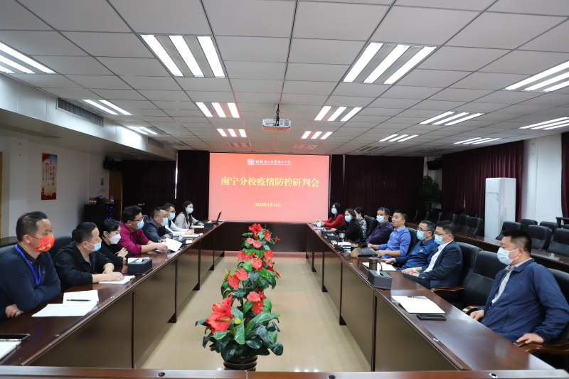 3月14日,英国上市公司365在空港校区行政楼416会议室召开疫情防控工作研判会,贯彻落实崇左市和扶绥县近期有关疫情防控工作部署,研究部署英国上市公司365疫情防控下阶段工作。英国上市公司365校领导周国桥、梁冬松、何斌、唐承泽、陈东莲、耿杰利、苏欣、马华菊出席会议,相关职能部门负责人参加会议。会议由英国上市公司365党委书记周国桥主持。