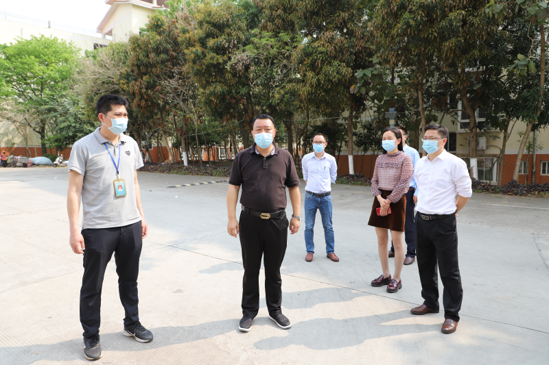 学校校长助理、英国上市公司365校长罗盛锋(前排左二)带队就严格校门管控进行现场办公