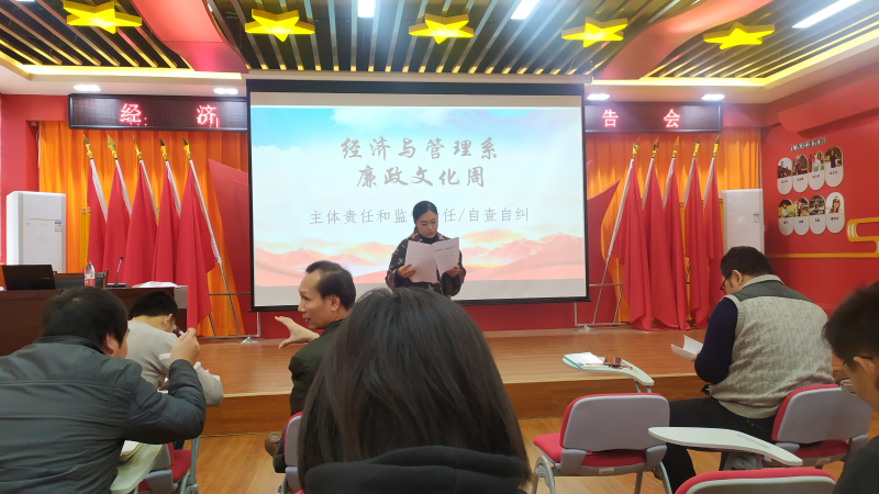 会上,经济与管理系党总支书记梁勤同志为与会人员宣读了由中共桂林理工大学委员会印法的关于《桂林理工大学2020年度党风廉政建设工作要点》的通知文件。强调2020年是我国决胜全面建成小康社会、决战脱贫攻坚和实现“十三五”规划的收官之年,是应届建党100周年、为“十四五”发展打好基础的关键之年,是贯彻落实学校第三次党代会精神的开局之年,是全面推进学校“双一流”建设和做好常态化疫情防控工作的紧要之年。并指出我校党风廉政建设工作的总体要求:坚持以习近平新时代中国特色社会主义思想为指导,深入学习贯彻党的十九大、十九届四中全会、十九届中央纪委四次全会精神,以党的政治建设为统领,坚持严的主基调,牢牢把握全面从严治党总要求,围绕落实好自治区党委教育工作委部署的工作任务,压紧压实全面从严治党的主体责任,强化监督责任,加强政治监督,严格日常监督,完善学校治理体系、提高治理效能,一体推进不敢腐、不能腐、不想腐,进一步增强“四个意识”、坚定“四个自信”、做到“两个维护”,扎实推进党风廉政建设和反腐败斗争,为学校教育事业高质量发展提供有力保障。
