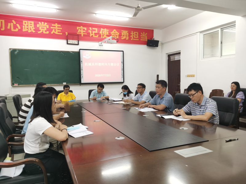 7月2日下午,机械系在藏修楼3205会议室召开师德师风专题会议。会议由该系党总支书记袁斌主持,系主任黄荣学、副主任甘卓权、系党总支副书记兼学工组长李杰、系团总支书记唐淑珍出席会议,全系教职工参加会议。