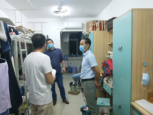 4月19日晚,冶金与资源工程系主任何贵香、党总支书记石有总、党总支副书记兼学工组长方艳、副主任王军正等系部主要负责人深入到我系学生公寓走访关怀了本科毕业班返校学生,辅导员王震陪同走访